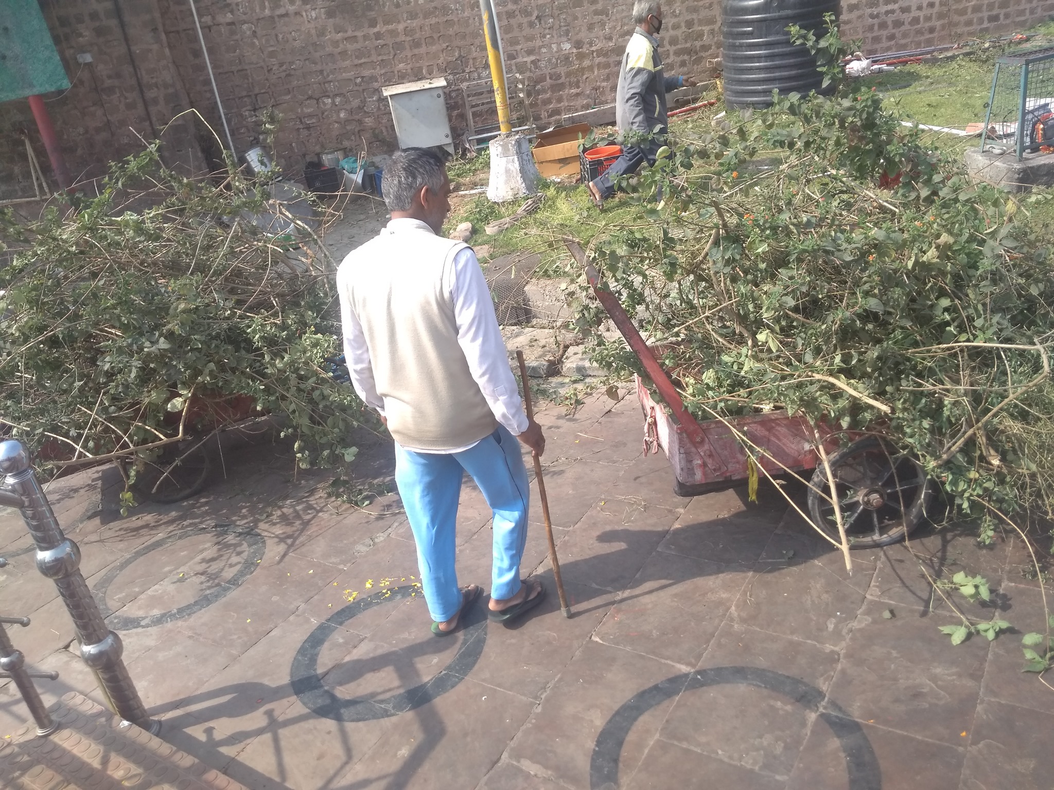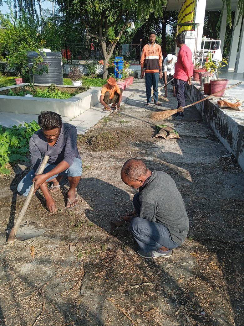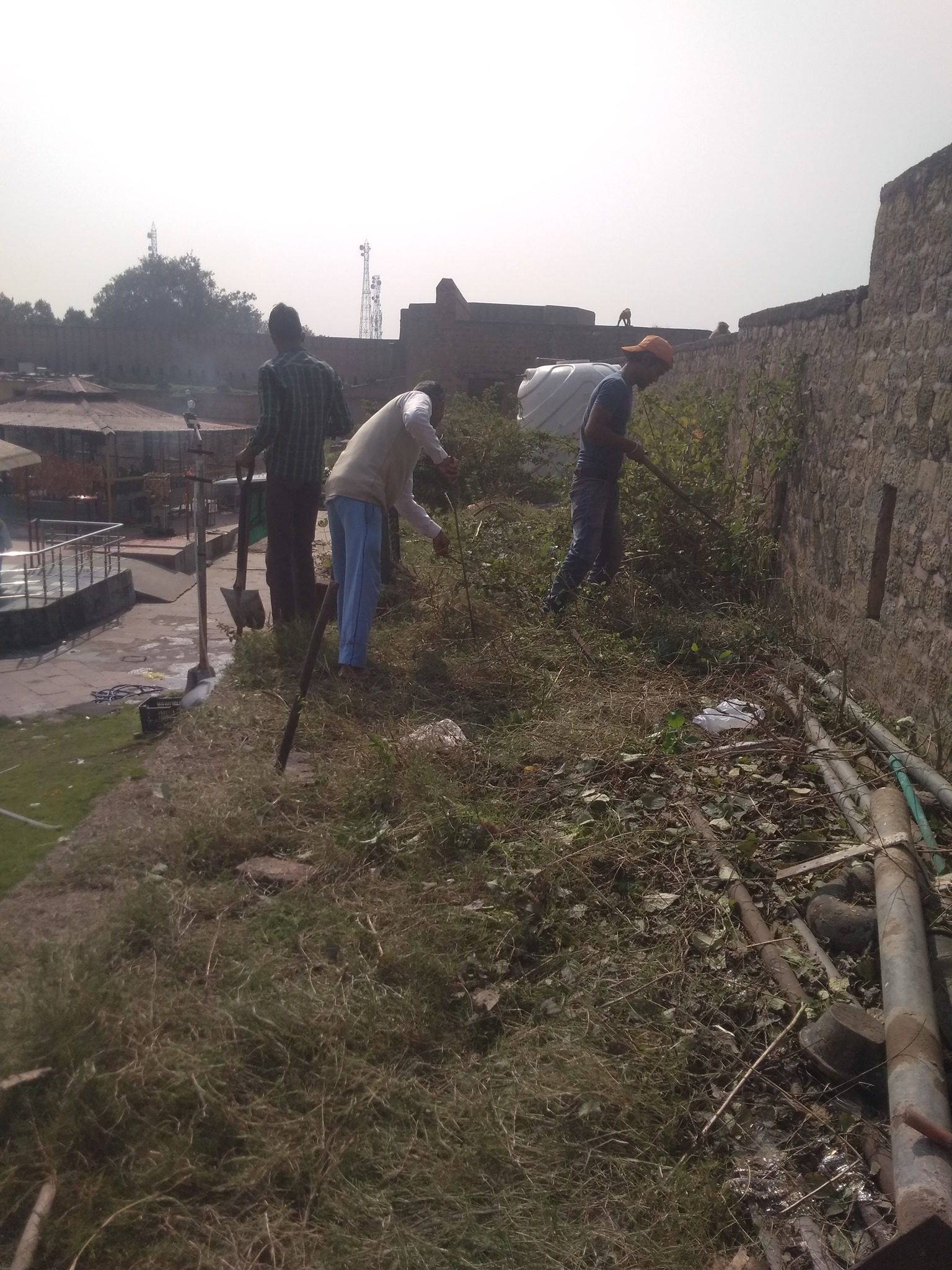 Work Done : CLEANLINESS DRIVE at the Temple Complex & cleaning of sarovar (sacred pond)  Removing unwanted bushes, etc.