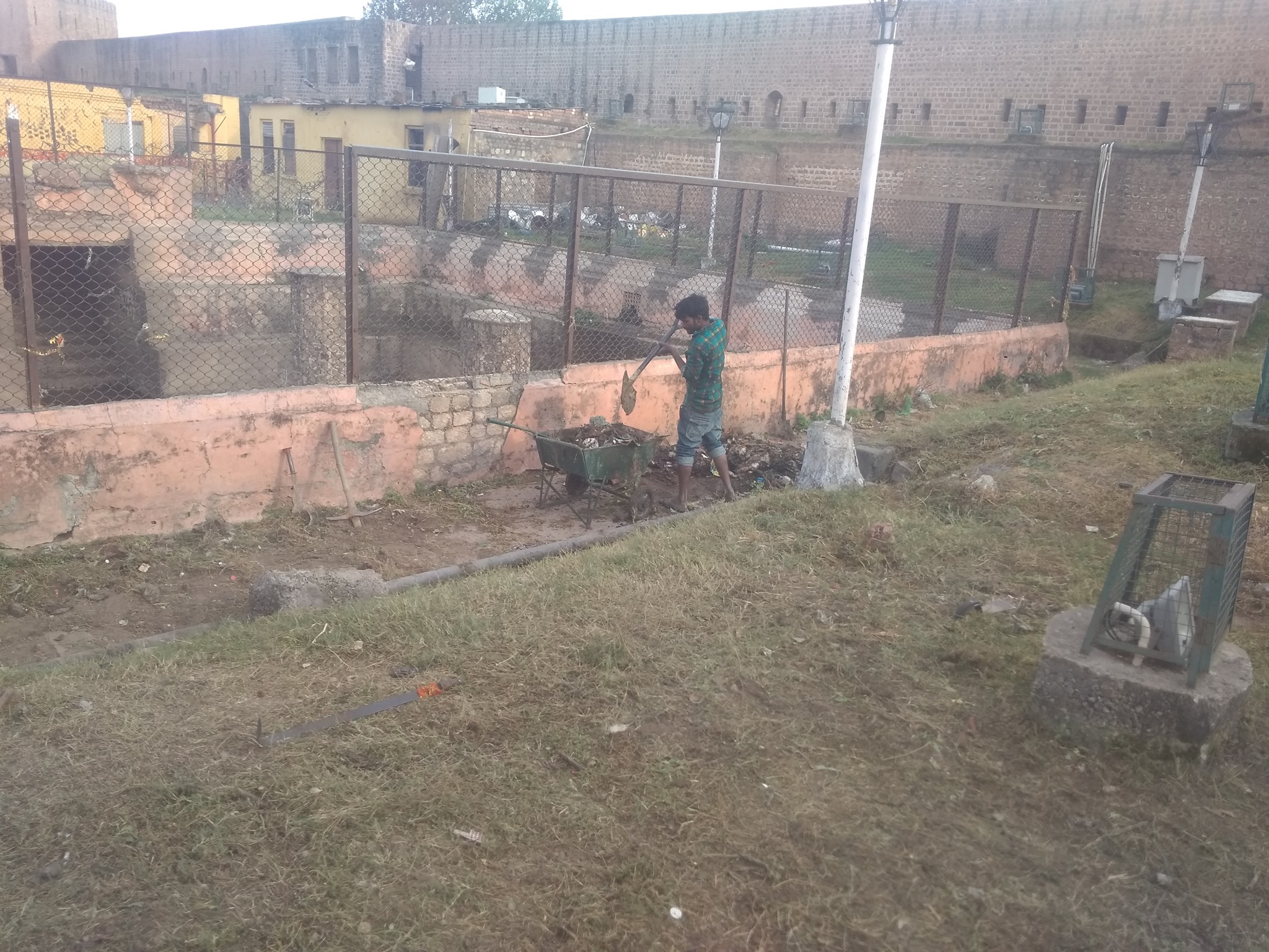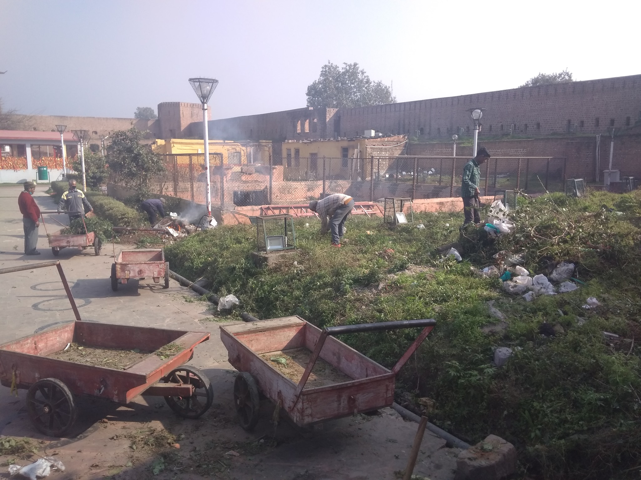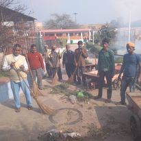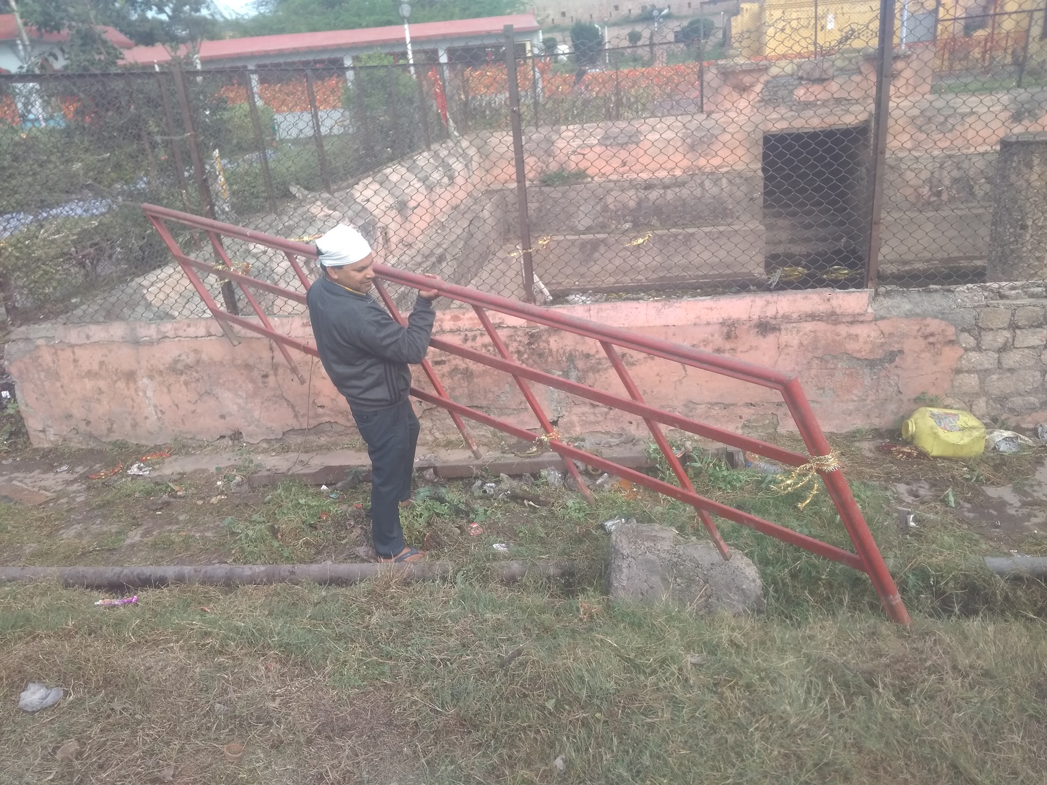 Work Done : CLEANLINESS DRIVE at the Temple Complex & cleaning of sarovar (sacred pond)  Removing unwanted bushes, etc.
