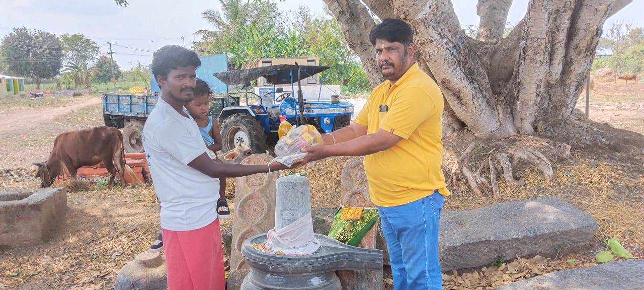 Financially helping locals to built the shed for the shiva lingam situated under a tree.
