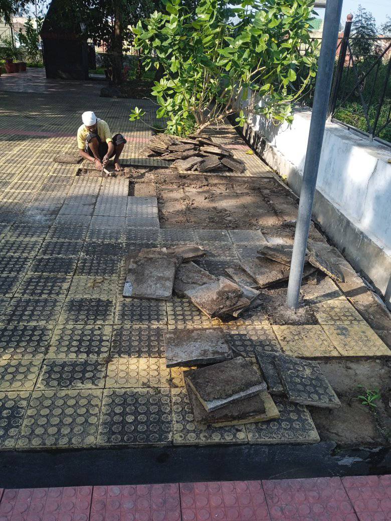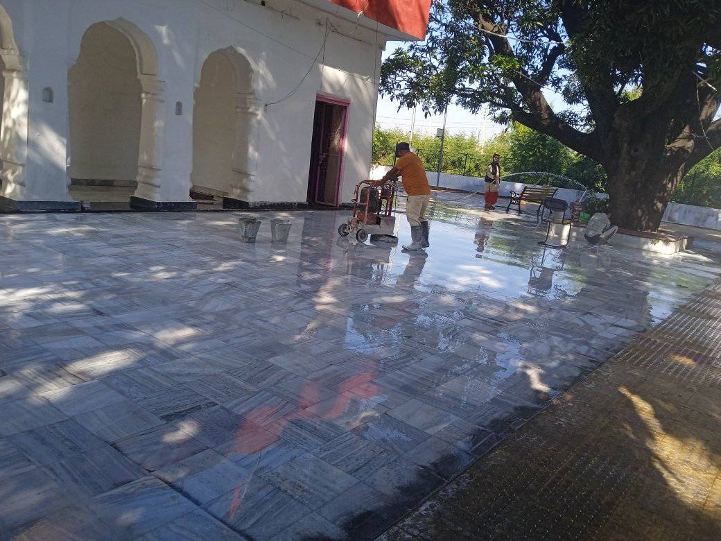 Cleaning and repairing of Marble and Tiles pain ng outer wall of the temple and construc on of the new water tank